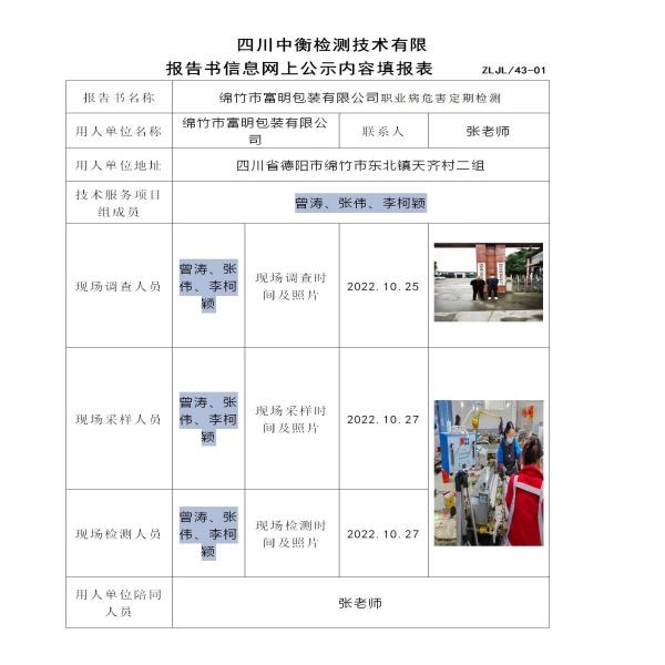 綿竹市富明包裝有限公司定期檢測
