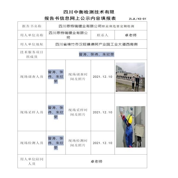 四川思特瑞鋰業(yè)有限公司定期檢測(cè)