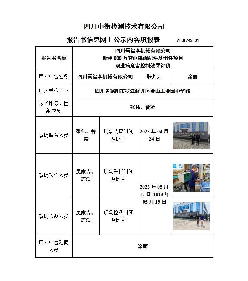 四川蜀福本機(jī)械有限公司“新建800萬套電磁閥配件及組件項(xiàng)目”職業(yè)病危害控制效果評(píng)價(jià)