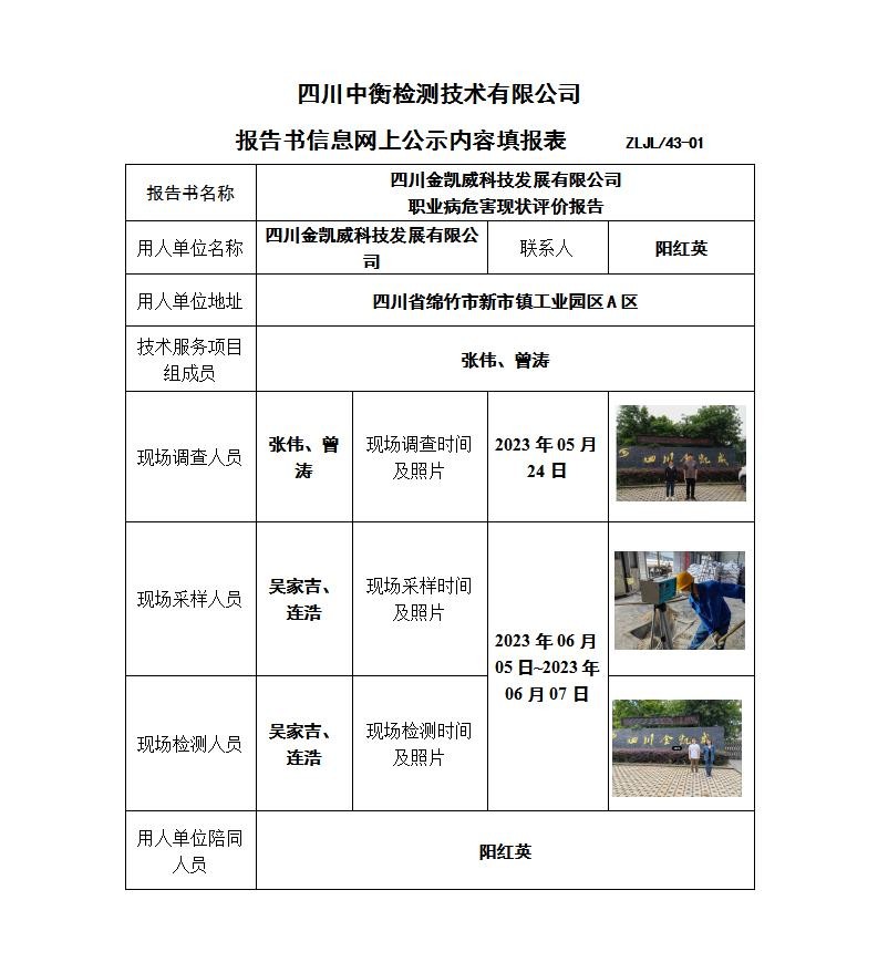 四川金凱威科技發(fā)展有限公司職業(yè)病危害現(xiàn)狀評價