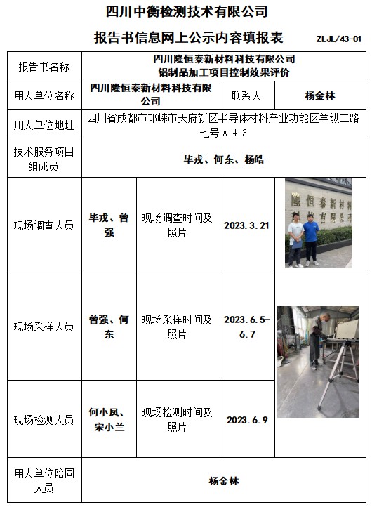 四川隆恒泰新材料科技有限公司 鋁制品加工項(xiàng)目控制效果評價(jià)