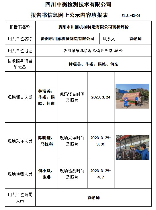 資陽市川雁機械制造有限公司現(xiàn)狀評價