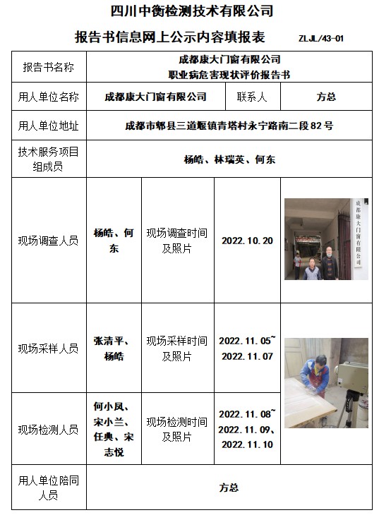 成都康大門窗有限公司 職業(yè)病危害現(xiàn)狀評價報告書