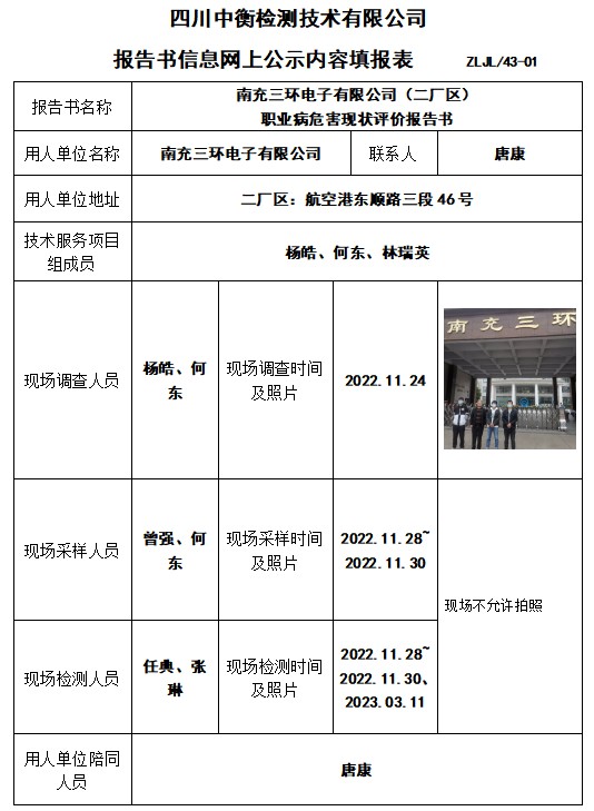 南充三環(huán)電子有限公司(二廠區(qū)) 職業(yè)病危害現(xiàn)狀評價報告書