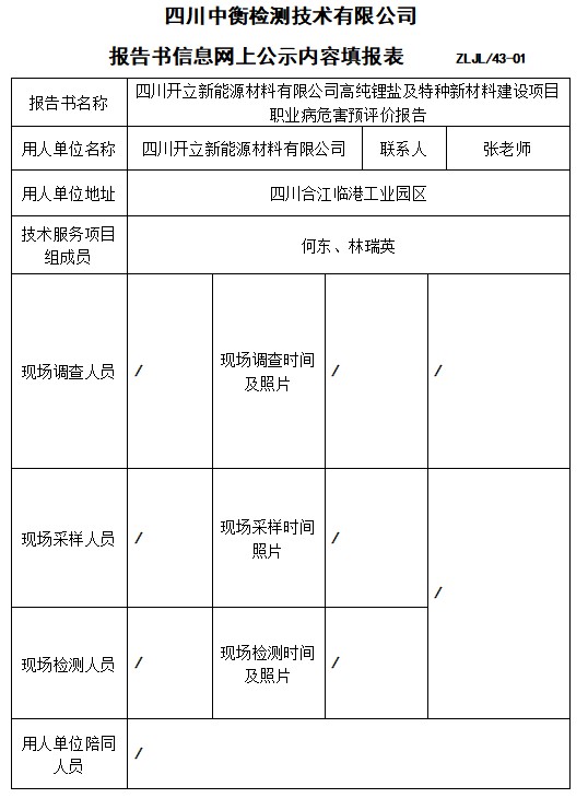 四川開立新能源材料有限公司高純鋰鹽及特種新材料建設(shè)項目職業(yè)病危害預(yù)評價報告