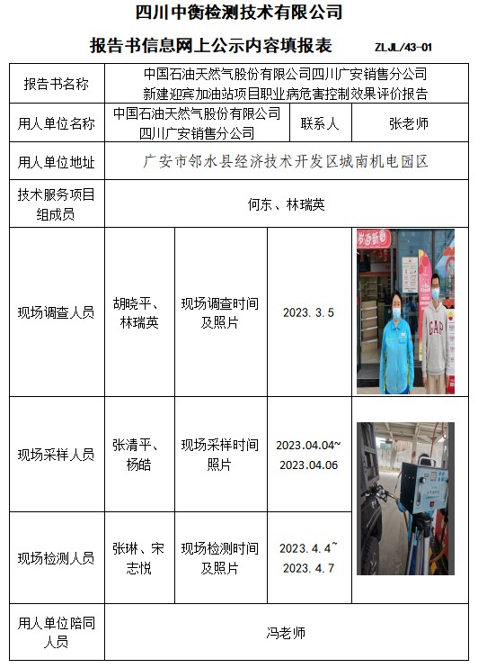 中國石油天然氣股份有限公司四川廣安銷售分公司 新建迎賓加油站項目職業(yè)病危害控制效果評價報告