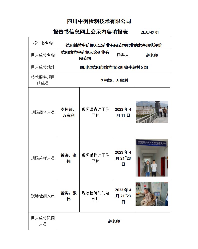 德陽綿竹中礦仰天窩礦業(yè)有限公司 職業(yè)病危害現(xiàn)狀評價