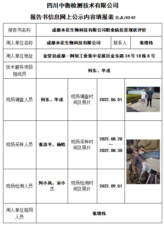 成都水花生物科技有限公司職業(yè)病危害現(xiàn)狀評價