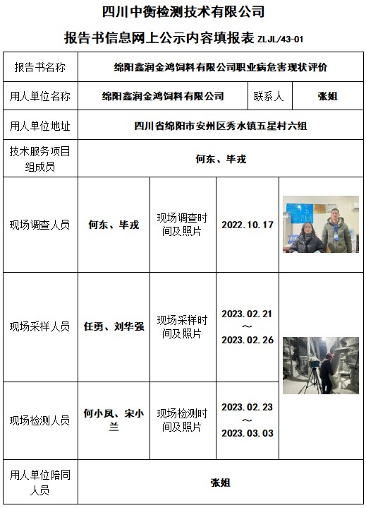 綿陽(yáng)鑫潤(rùn)金鴻飼料有限公司職業(yè)病危害現(xiàn)狀評(píng)價(jià)