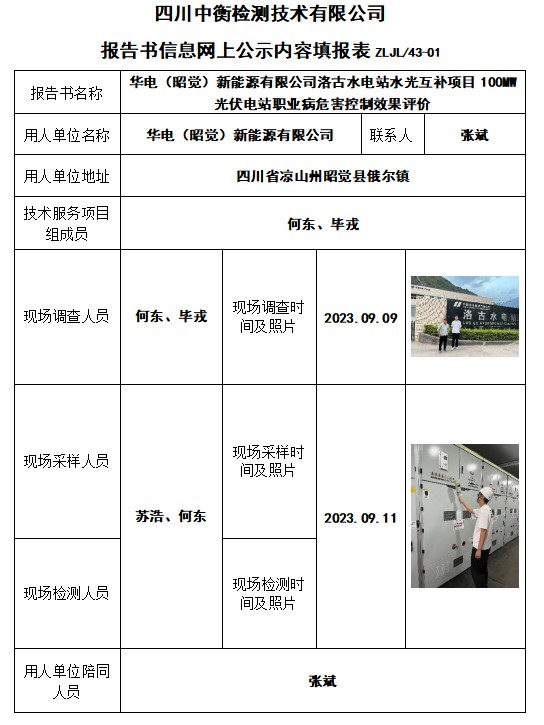華電(昭覺)新能源有限公司洛古水電站水光互補項目100MW光伏電站職業(yè)病危害控制效果評價