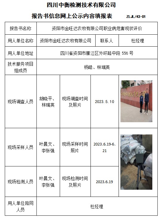 資陽市金旺達農(nóng)牧有限公司職業(yè)病危害現(xiàn)狀評價