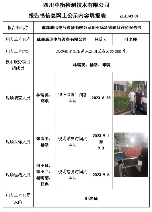成都誠迅電氣設(shè)備有限公司職業(yè)病危害現(xiàn)狀評價(jià)報(bào)告書