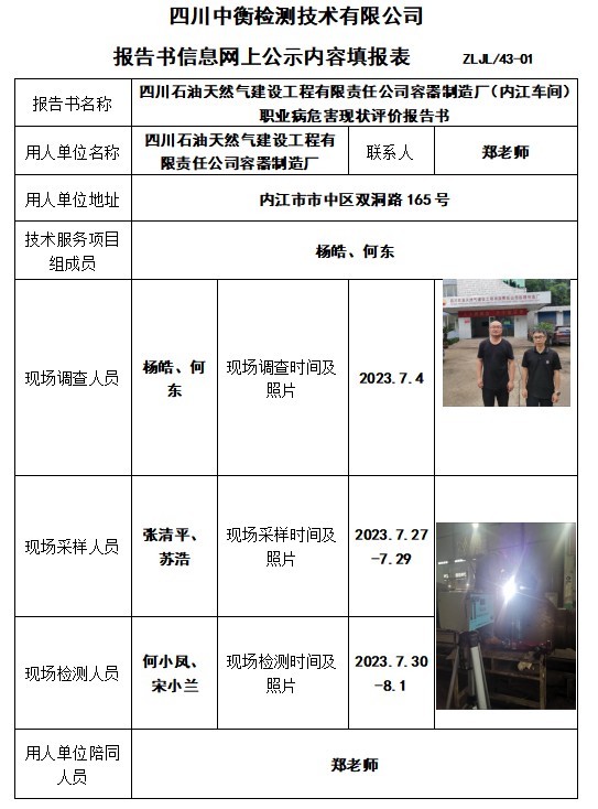 四川石油天然氣建設(shè)工程有限責(zé)任公司容器制造廠(內(nèi)江車間)職業(yè)病危害現(xiàn)狀評(píng)價(jià)報(bào)告書