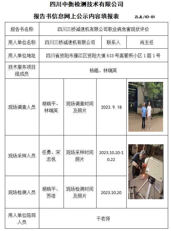 四川三橋減速機(jī)有限公司職業(yè)病危害現(xiàn)狀評(píng)價(jià)