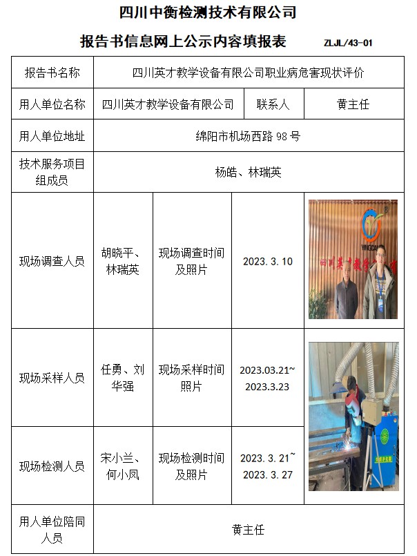 四川英才教學(xué)設(shè)備有限公司職業(yè)病危害現(xiàn)狀評(píng)價(jià)