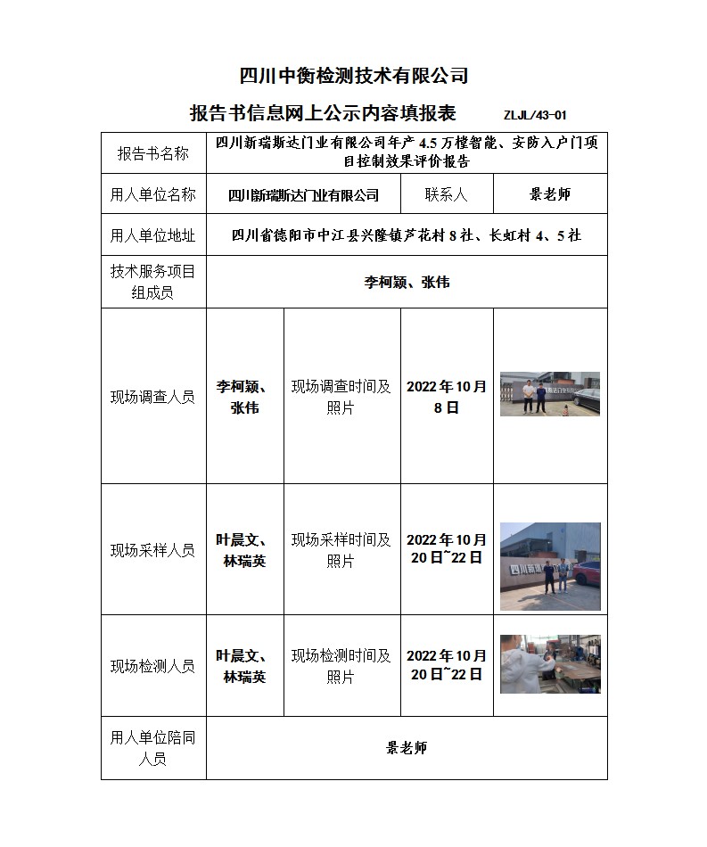 四川新瑞斯達(dá)門(mén)業(yè)有限公司控制效果評(píng)價(jià)