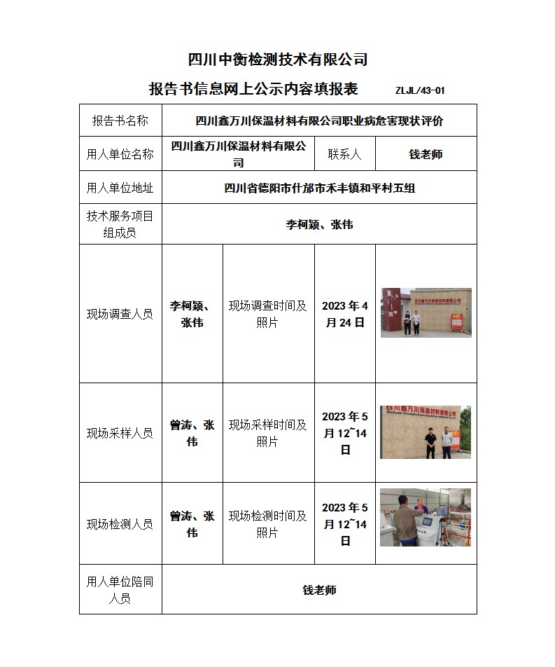 四川鑫萬(wàn)川保溫材料有限公司職業(yè)病危害現(xiàn)狀評(píng)價(jià)