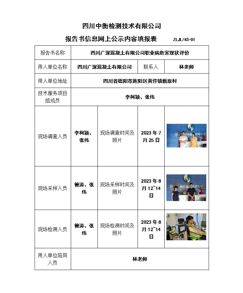 四川廣深混凝土有限公司職業(yè)病危害現(xiàn)狀評(píng)價(jià)