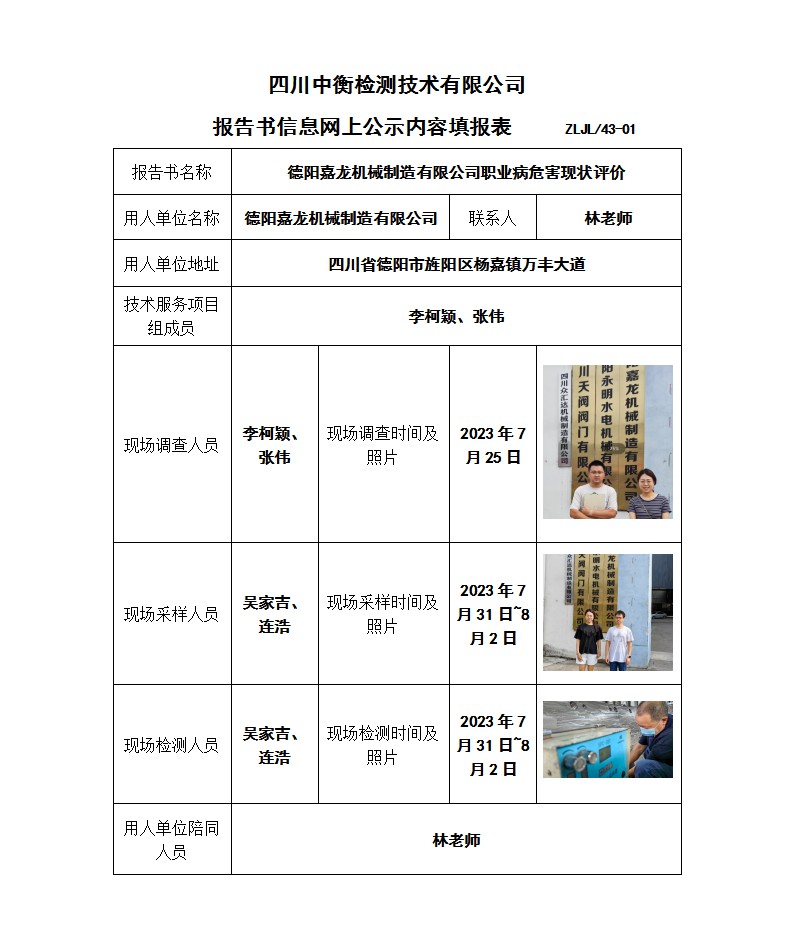 德陽嘉龍機械制造有限公司職業(yè)病危害現狀評價