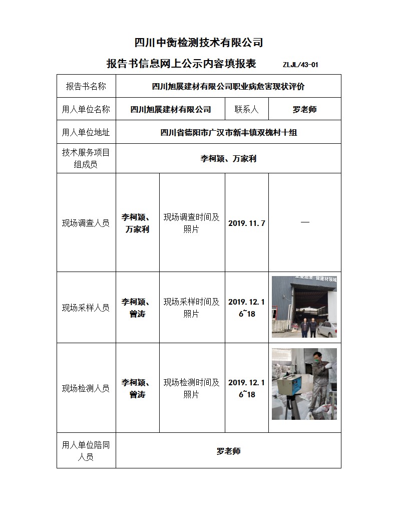 四川旭展建材有限公司職業(yè)病危害現(xiàn)狀評(píng)價(jià)