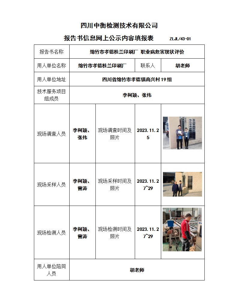綿竹市孝德桂蘭印刷廠 職業(yè)病危害現(xiàn)狀評(píng)價(jià)