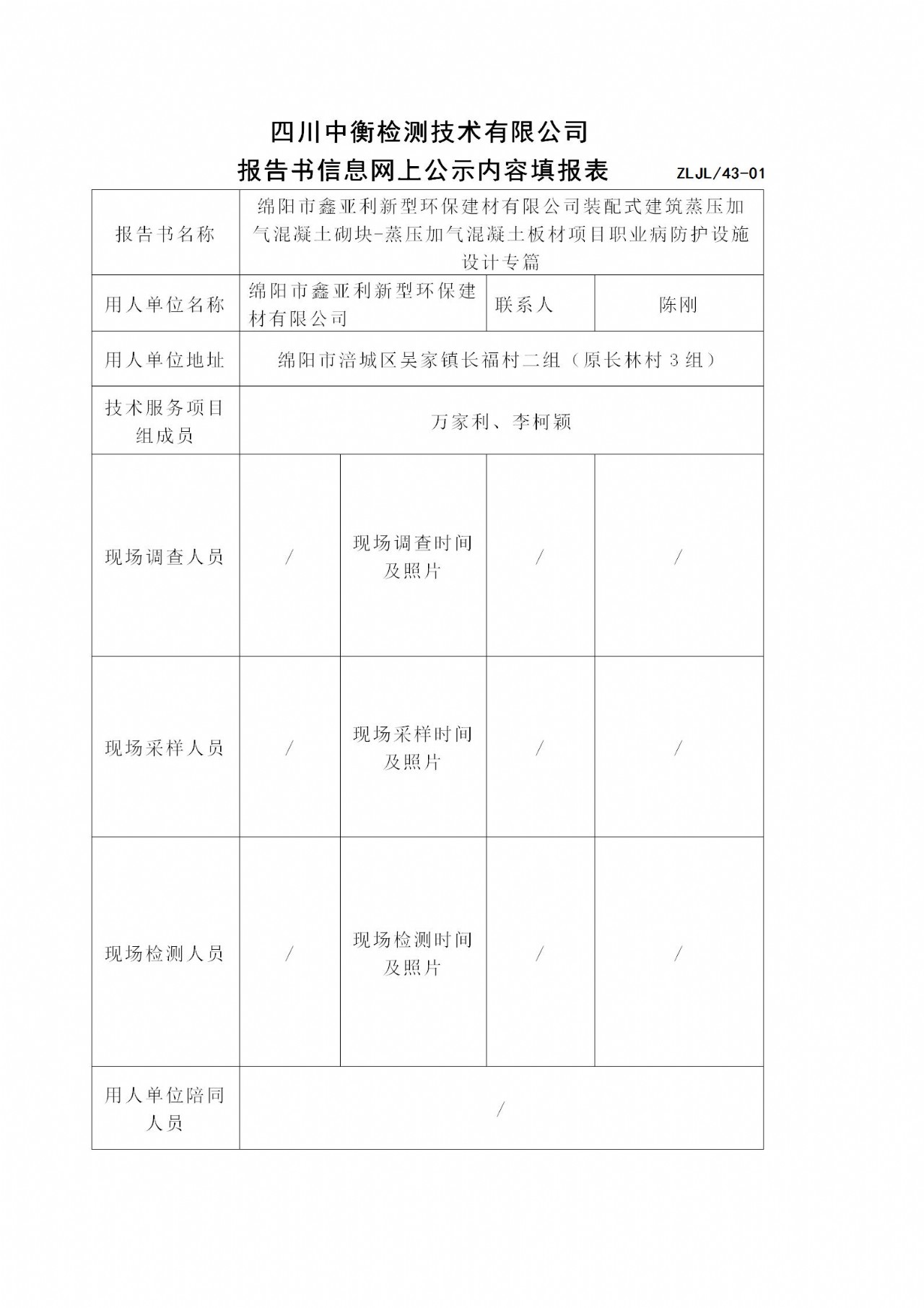綿陽市鑫亞利新型環(huán)保建材有限公司裝配式建筑蒸壓加氣混凝土砌塊-蒸壓加氣混凝土板材項(xiàng)目職業(yè)病防護(hù)設(shè)施設(shè)計(jì)專篇