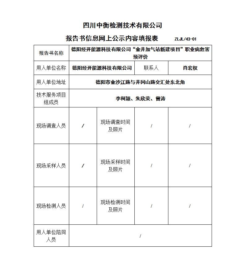 德陽經(jīng)開能源科技有限公司“金井加氣站新建項目”職業(yè)病危害預(yù)評價