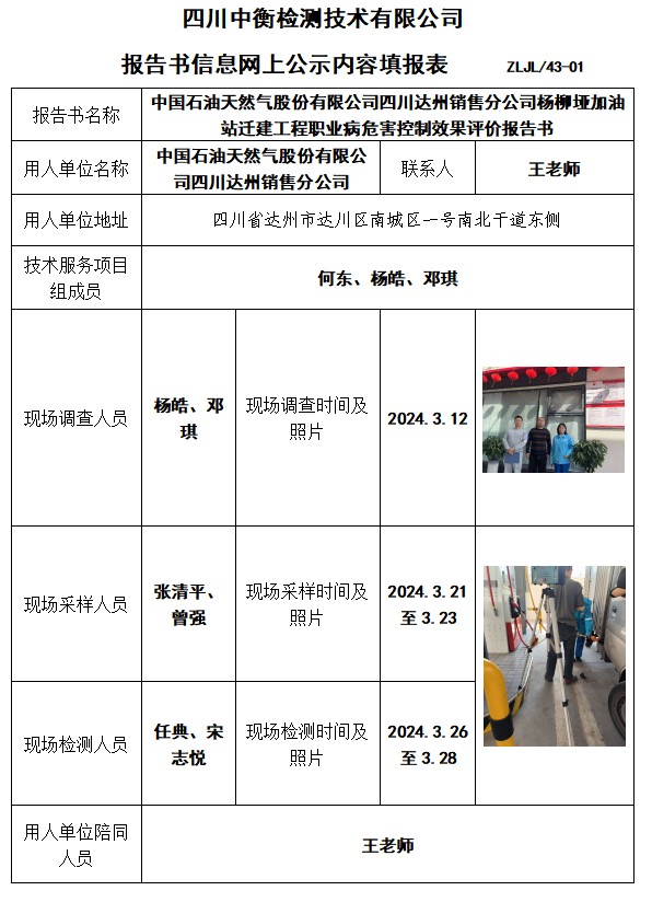 中國石油天然氣股份有限公司四川達(dá)州銷售分公司楊柳埡加油站遷建工程職業(yè)病危害控制效果評價報告書