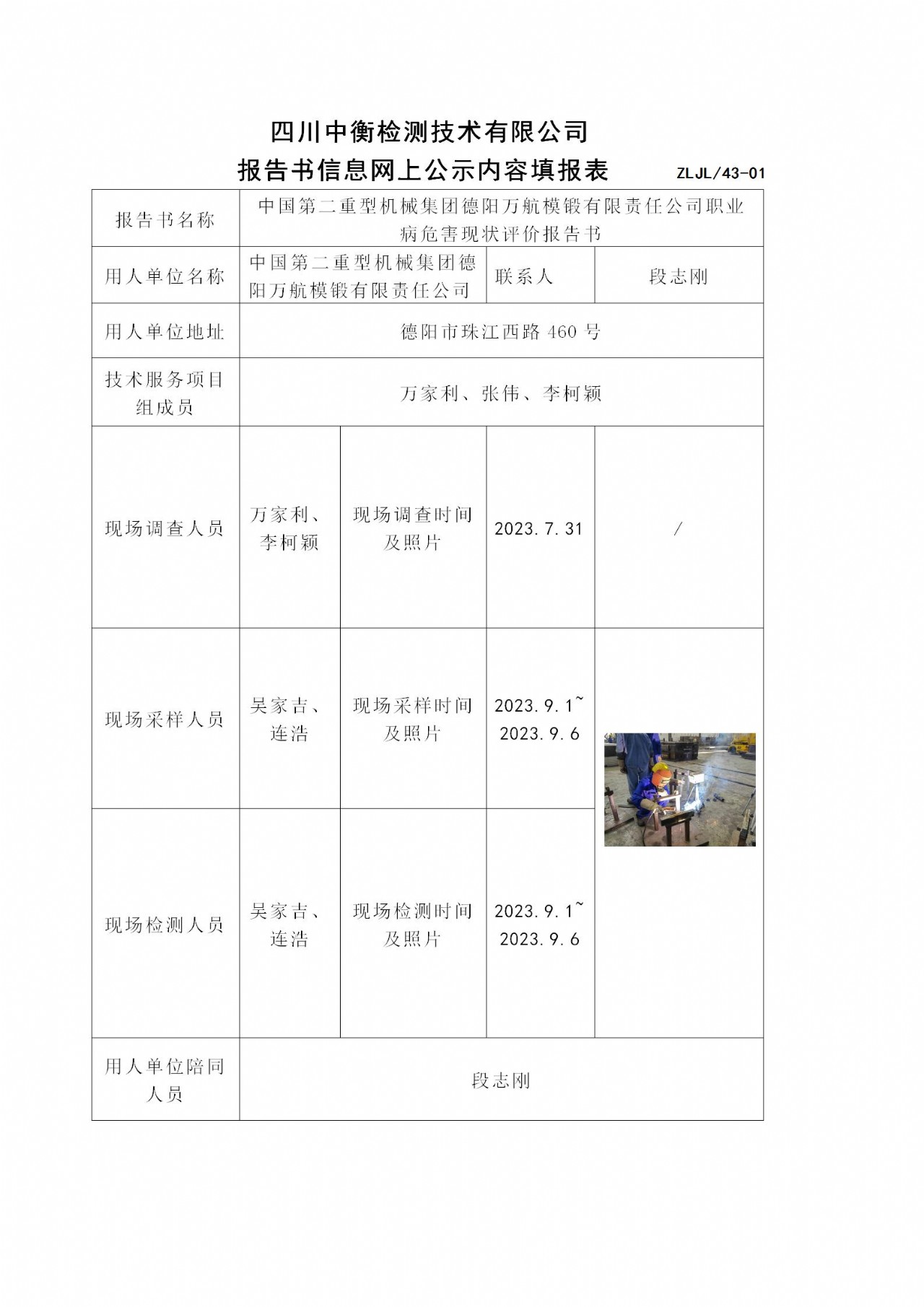 中國(guó)第二重型機(jī)械集團(tuán)德陽(yáng)萬(wàn)航模鍛有限責(zé)任公司職業(yè)病危害現(xiàn)狀評(píng)價(jià)報(bào)告