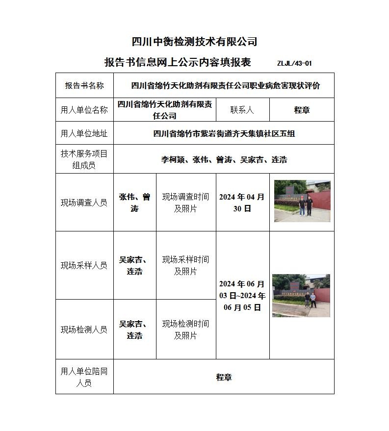 四川省綿竹天化助劑有限責任公司職業(yè)病危害現(xiàn)狀評價