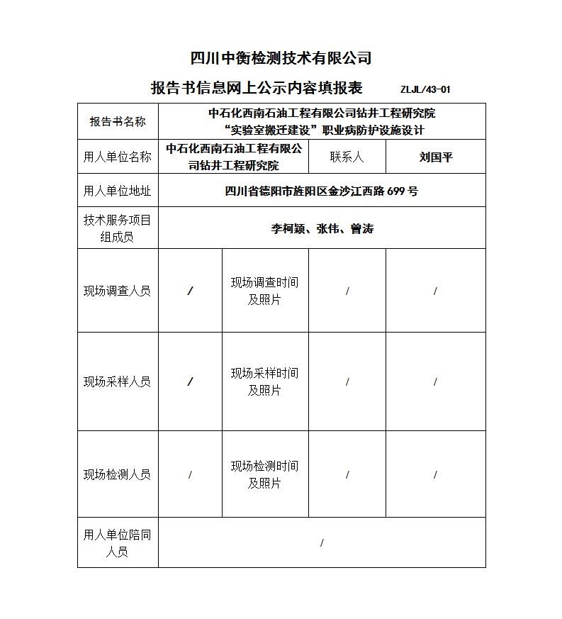中石化西南石油工程有限公司鉆井工程研究院“實驗室搬遷建設(shè)”職業(yè)病防護設(shè)施設(shè)計