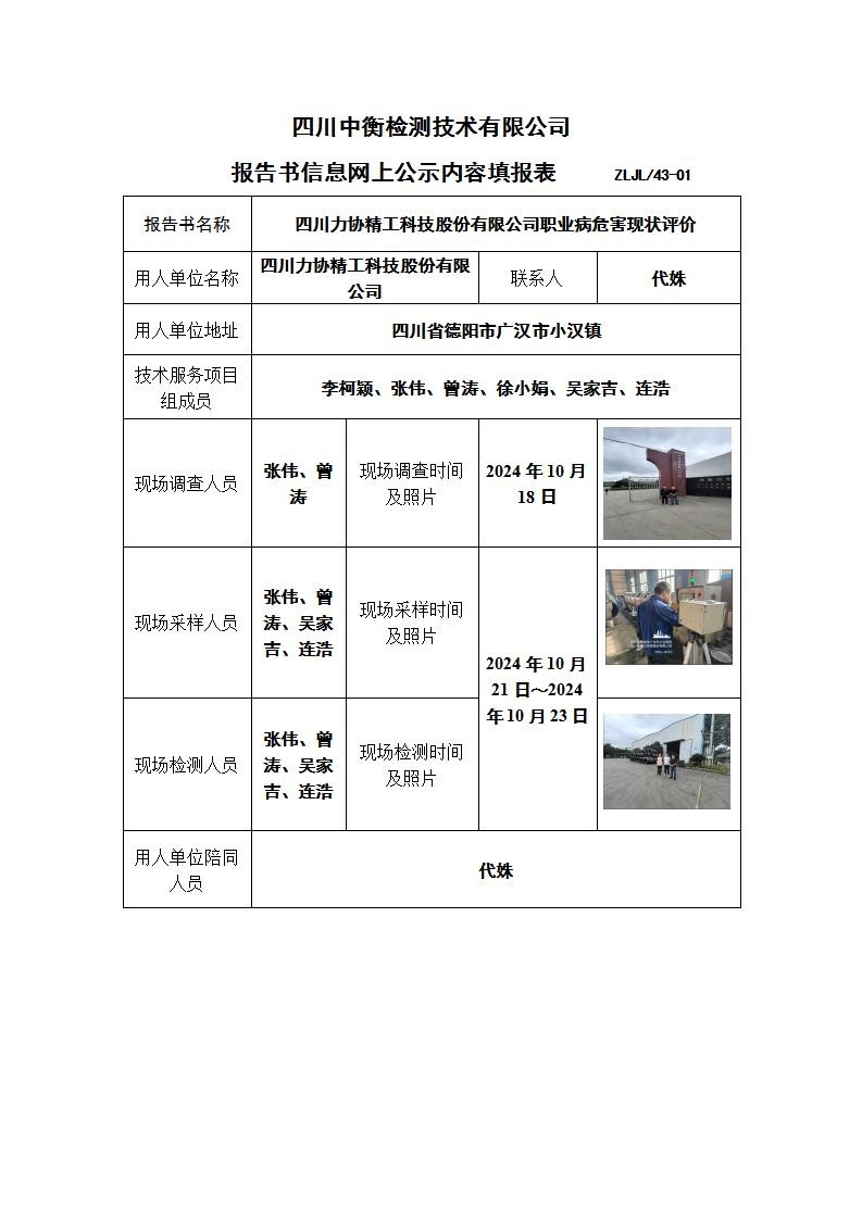 四川力協(xié)精工科技股份有限公司職業(yè)病危害現(xiàn)狀評價(jià)