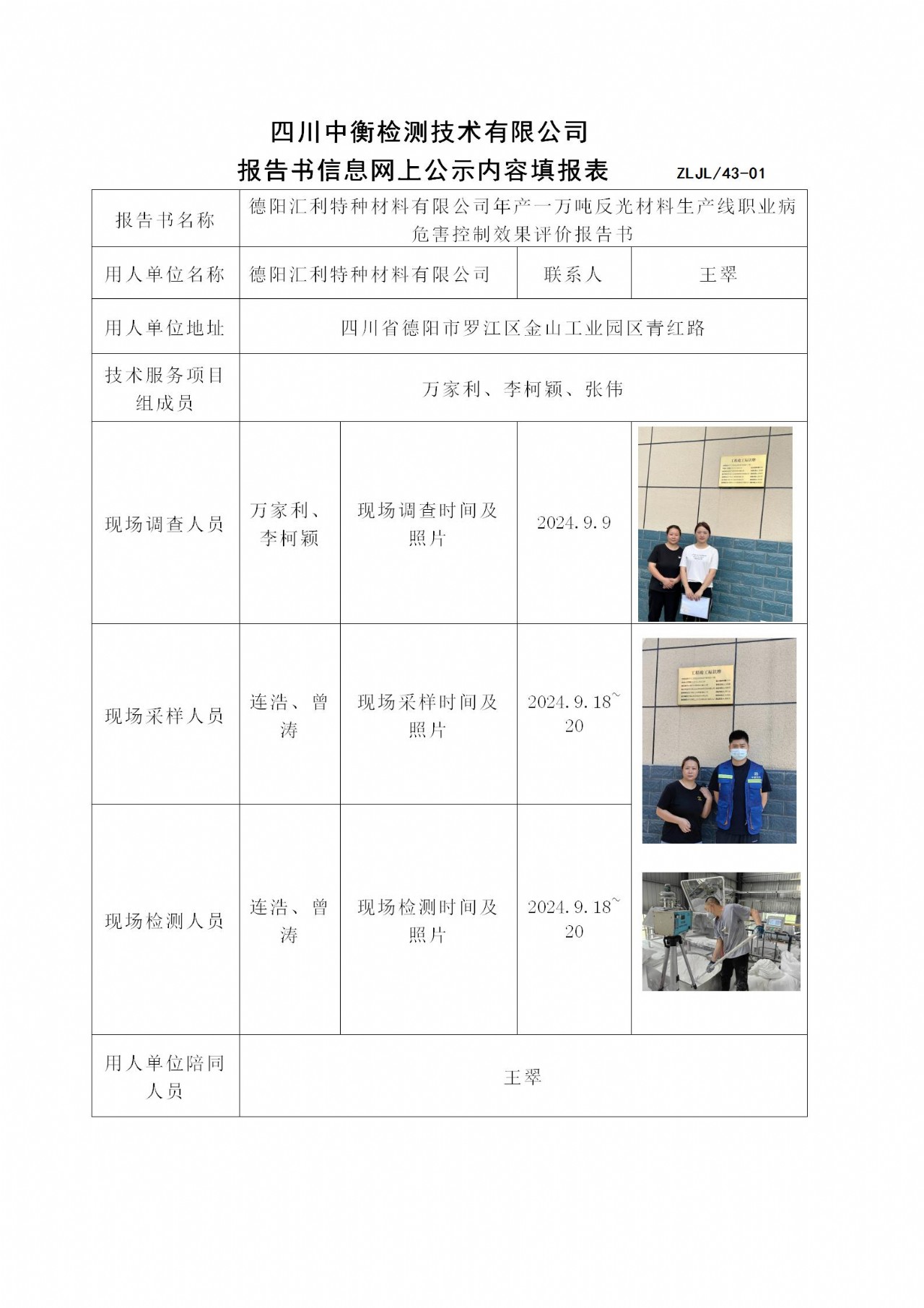德陽匯利特種材料有限公司年產(chǎn)一萬噸反光材料生產(chǎn)線職業(yè)病危害控制效果評(píng)價(jià)