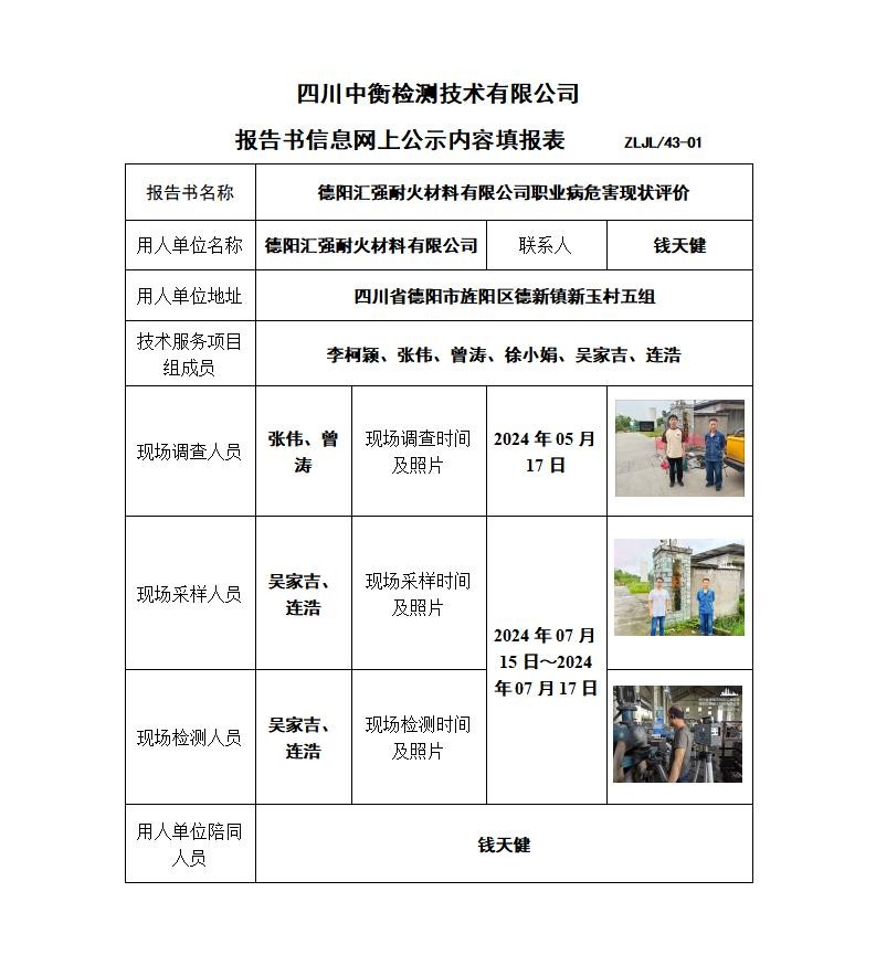 德陽匯強耐火材料有限公司職業(yè)病危害現(xiàn)狀評價