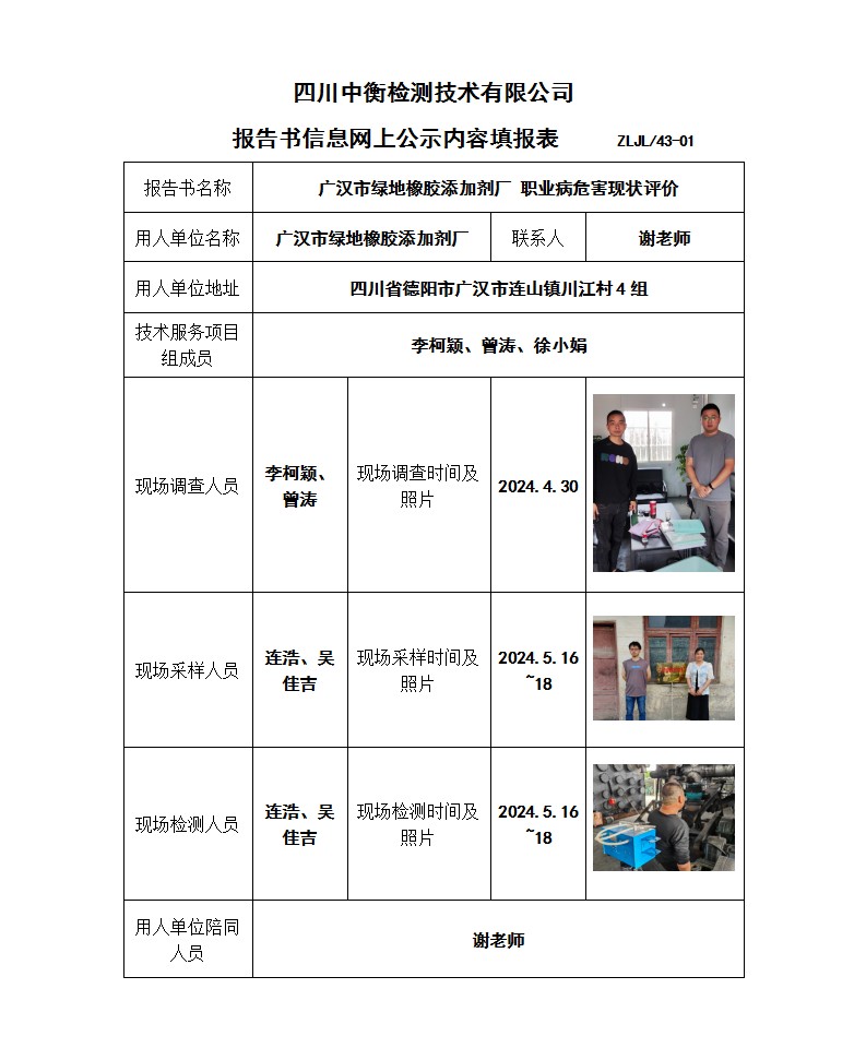 廣漢市綠地橡膠添加劑廠 職業(yè)病危害現(xiàn)狀評價報告書