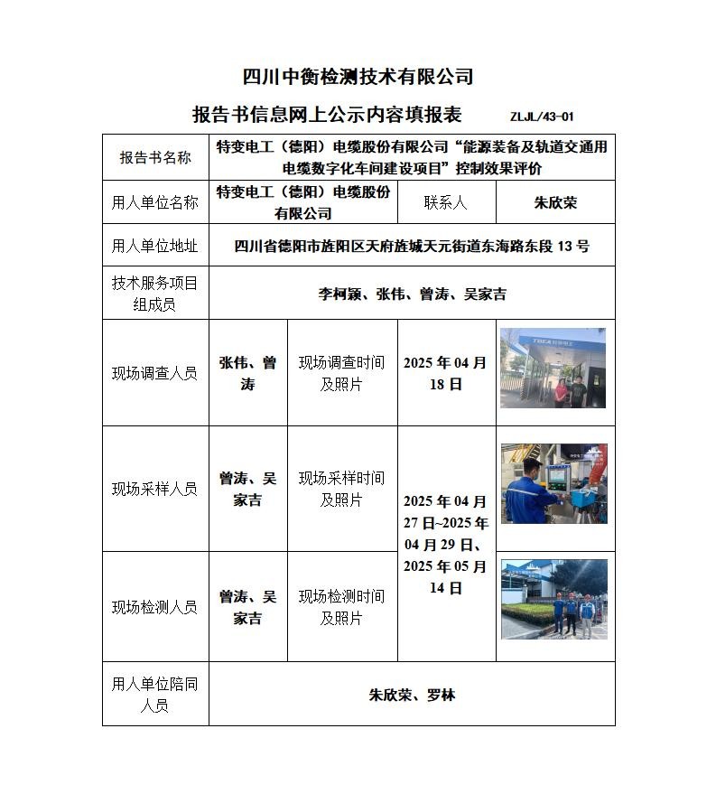 特變電工(德陽)電纜股份有限公司“能源裝備及軌道交通用電纜數(shù)字化車間建設項目”控制效果評價