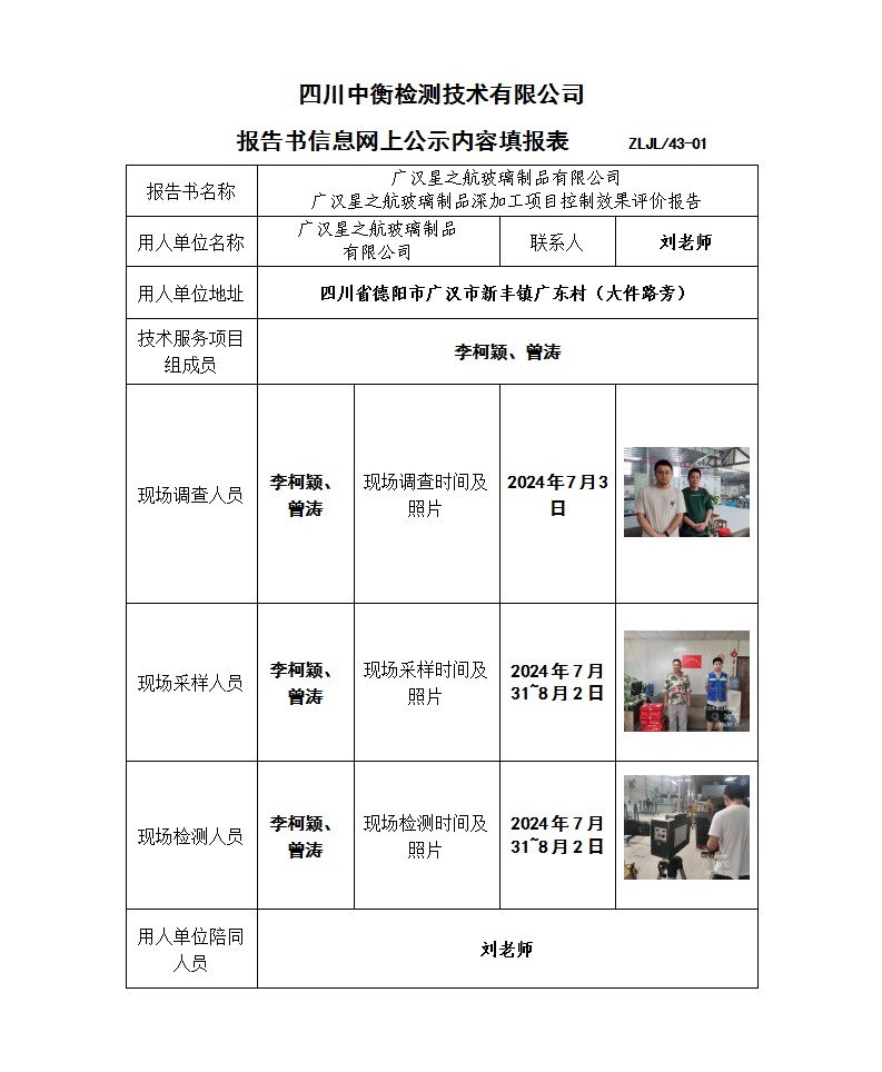 廣漢星之航玻璃制品有限公司 廣漢星之航玻璃制品深加工項(xiàng)目 職業(yè)病危害控制效果評(píng)價(jià)