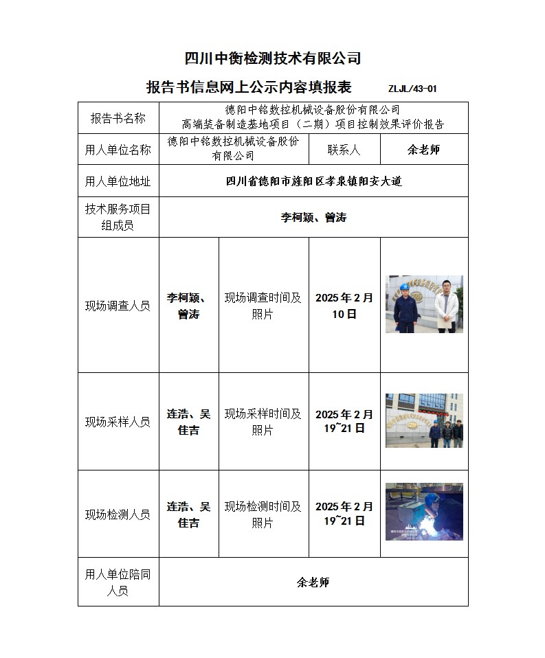 德陽中銘數(shù)控機(jī)械設(shè)備股份有限公司 高端裝備制造基地項(xiàng)目(二期)項(xiàng)目 職業(yè)病危害控制效果評價